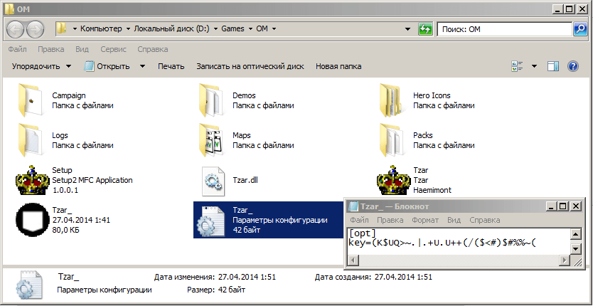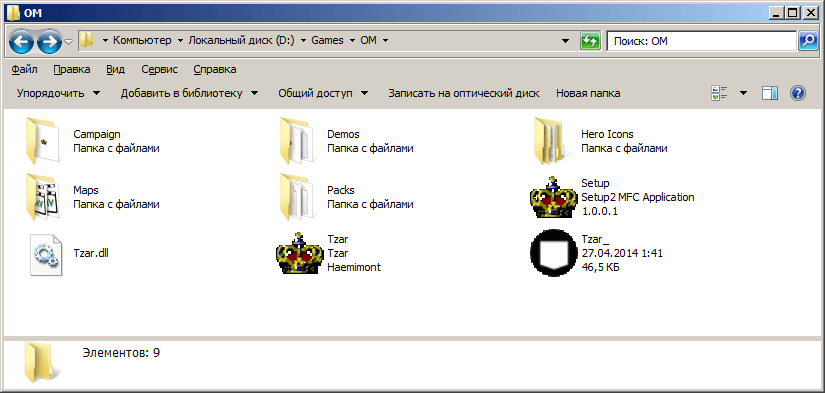 и видим, что лежит она в D:\Games\OM, а сама игра стартует через Tzar.exe