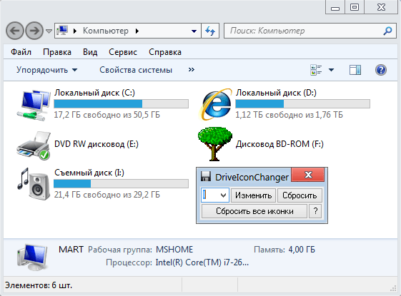 Приложение, способное изменить иконку для любого диска (локальный/съемный/DVD) вашего компьютера.