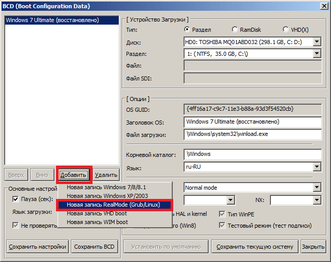 2) Приложение редактирования меню загрузки Windows. Буду использовать