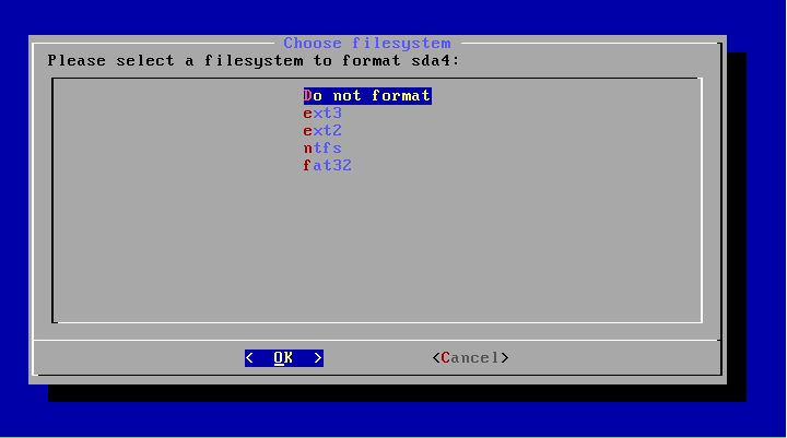 Какие-то 5(!) разделов, хотя на самом деле у меня их три. 1-скрытый раздел, которой создает Win7 для загрузки в 100МБ, сама система на втором разделе, и раздел 3 - файлопомойка (диск D). Да и размер дисков тоже не указан, а потому ставлю наощупь на диск, который больше всего интересен SDA4 (оказался D).