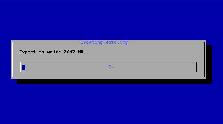 Хранилище файлов пользователя (файл data.img) я указал максимальное - 2047МБ, чтобы всем хватило. Сама система без этого хранилища занимает 307 330 993 байт (293 МБ).
