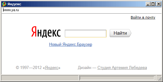 Opera получила название OperaOne. One(один), потому что одноразовая. Каждый ее запуск будет открывать чистую, исходную оперу, словно вы в ней никогда до этого не работали. Поэтому ссылки на нужные Вам сайты храните рядом в текстовом файле (или используйте другие браузеры, а не мою поделку, если не нравится такой подход). Урезана и пожата она очень жестоко, а потому даже страница "О программе" (как и все системные страницы) отображаются без фирменного оформления, но вполне себе читабельны. Поясню очевидное: Все страницы эта Opera отображает правильно и красиво, а страницы с ошибками ("Невозможно найти удалённый сервер", "О программе", opera:config и т.д.) отображаются без красивого оформления. За основу взята Версия: 12.11 Сборка: 1661. Вес чуда составил 7,50 МБ (7 872 209 байт) Вторая же поделка - написана с нуля и получила название NanoBrowser, потому как мне не доводилось видеть браузер меньше этого. Вес составил 85,0 КБ (87 040 байт), а выглядит NanoBrowser вот так.  Само собой - окно можно развернуть на весь экран. СкачатьP.S. Повторяю, что оба приложения являются лишь инструментом для аварийных случаев.